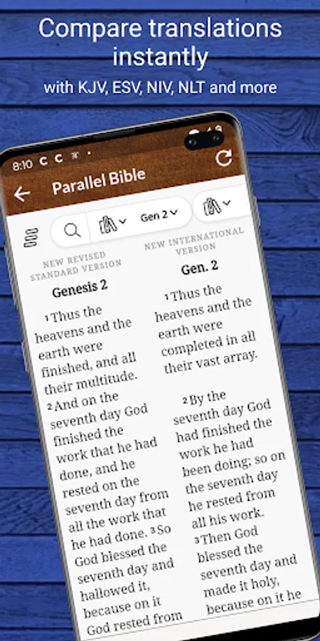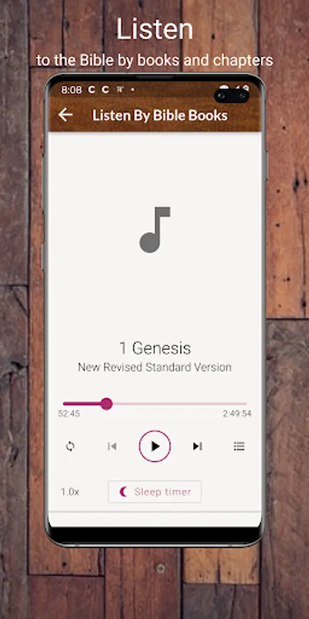 The app includes the complete New Revised Standard Version (NRSV) Bible audio and ebook. A dramatic reading audio and the ebook Study Bible - Old and New Testament plus many free features.