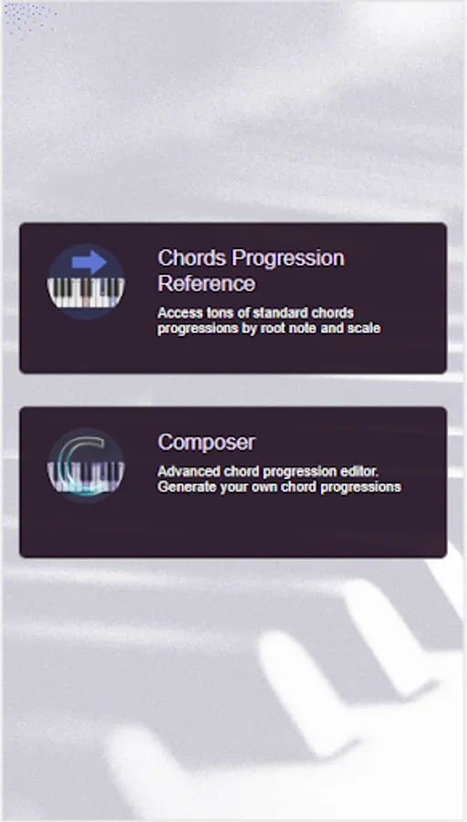 Discover Chord Progression Reference application to access well known chord progressions for all keys and Composer to create your own chord progressions
