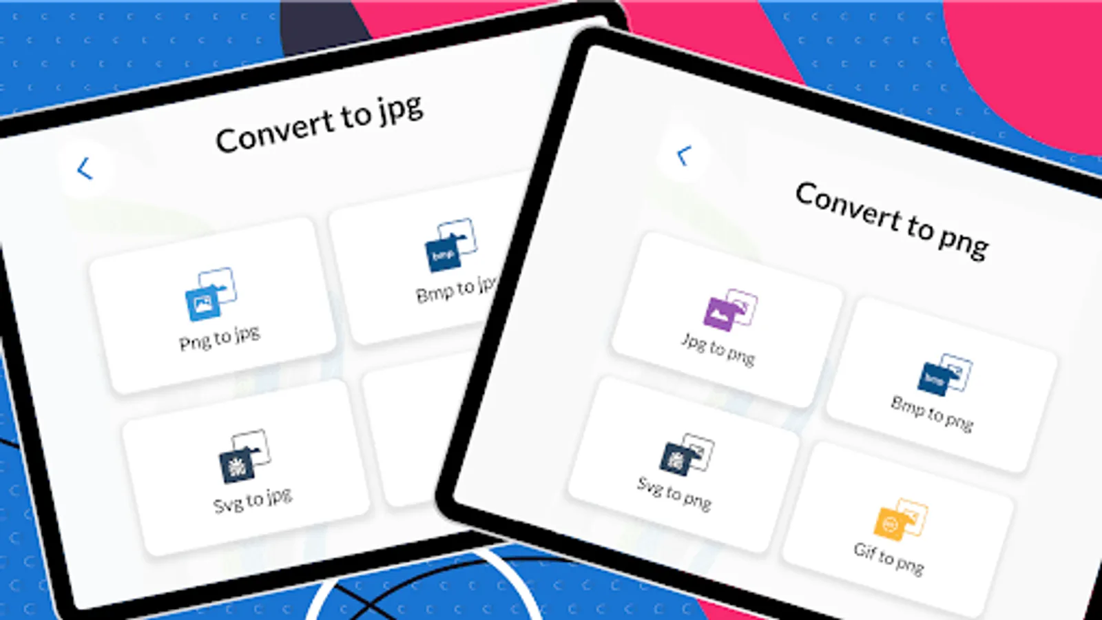 JPG PDF converter, allows you to convert your images quickly from one format to another to reduce file size, better resolution, and share easily. No limit to image size, and no need for registration, no watermark. This tool automatically converts the file format without impacting the quality standards. The best thing about our app is that it supports multiple image conversions from JPG, PNG, BMP, PDF, and SVG to GIF.