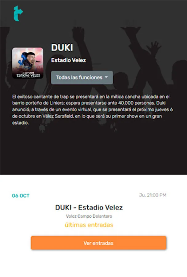 We are the largest online ticket sales platform in Latin America, with tickets available for hundreds of musical and theatrical events. We allow users to buy and sell tickets whenever and wherever they are.