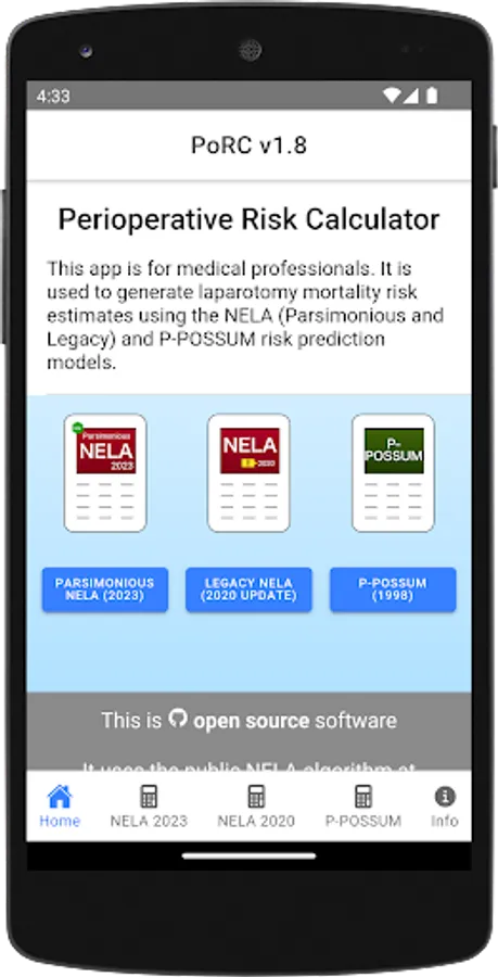 Risk prediction is recommended clinical best practice and PoRC: Perioperative Risk Calculator allows you to undertake this quickly and easily. As an app, it does not require an internet connection and stores no personal or patient information.