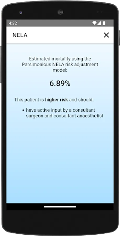 The internal algorithm is maintained by the NELA Project Team at data.nela.org.uk/riskcalculator