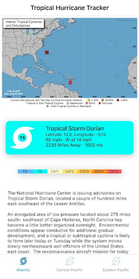 Tropical Hurricane Tracker provides the most up-to-date information about hurricanes, tropical storms, and disturbances in the Atlantic, Central Pacific, and Eastern Pacific basins.