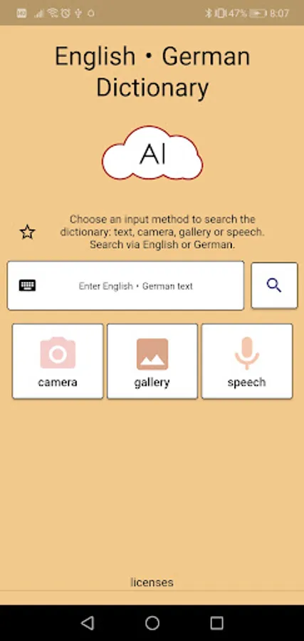 The AI dictionary will recognize speech allowing you to search the dictionary by speaking into the microphone in both English and German.