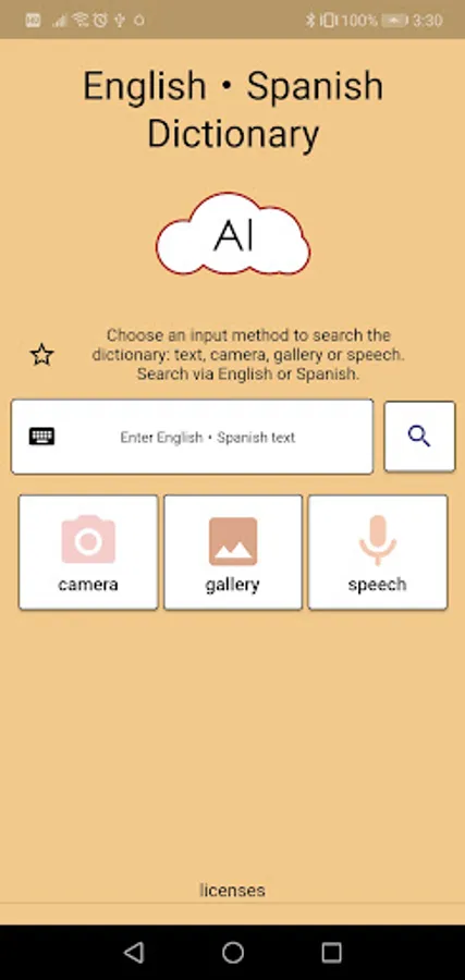 The AI dictionary will recognize speech allowing you to search the dictionary by speaking into the microphone in both English and Spanish.