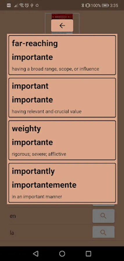 Search the English/Spanish dictionary in multiple ways: