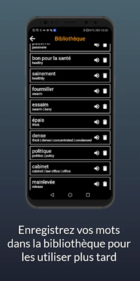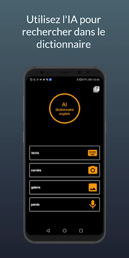 The AI dictionary will recognize speech, allowing you to search the dictionary by speaking into the microphone in English and French.