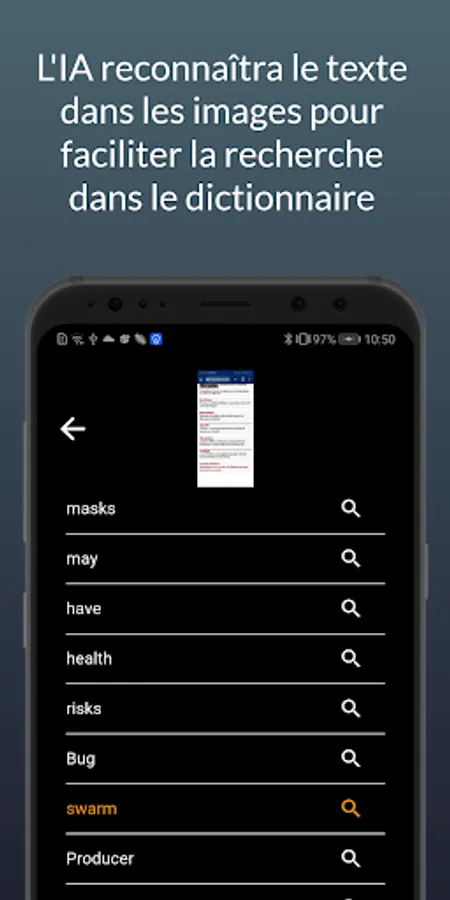 The AI dictionary will recognize English and French text in images from the camera or photo gallery, allowing users to search multiple words quickly and efficiently.