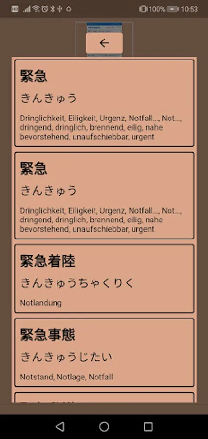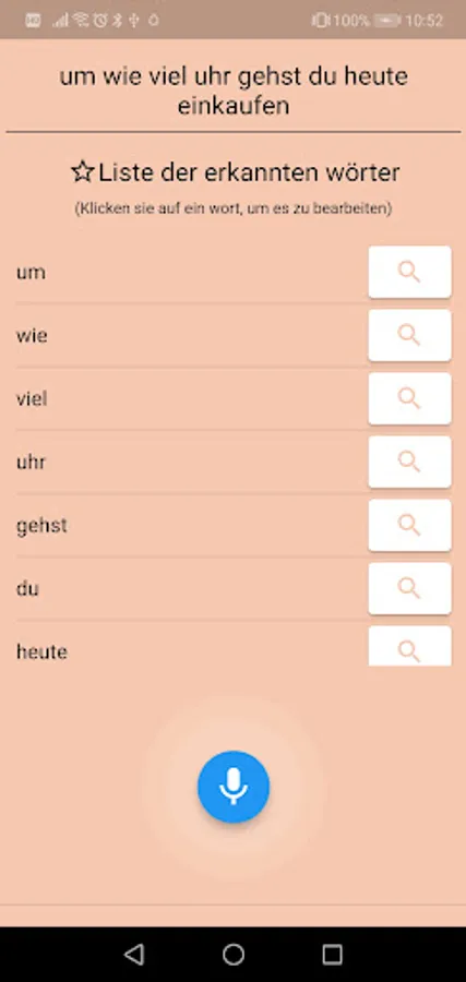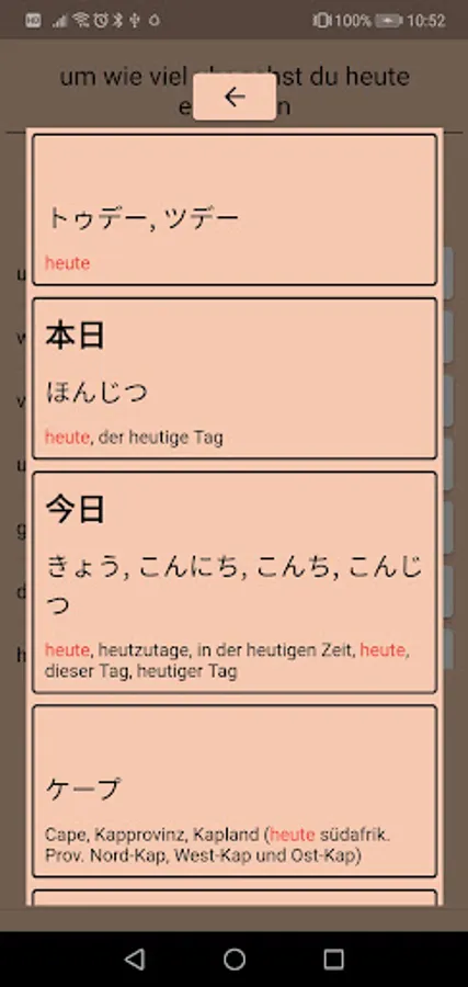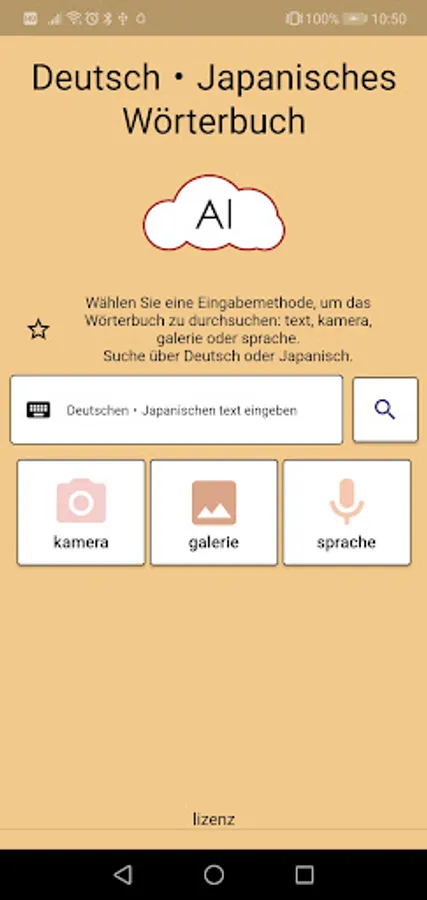 Das KI-Wörterbuch erkennt Sprache, sodass Sie das Wörterbuch durchsuchen können, indem Sie sowohl auf Deutsch als auch auf Japanisch in das Mikrofon sprechen.
