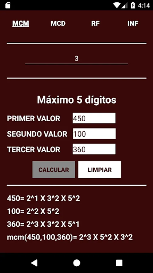 The application will allow you to find the lcm (least common multiple), gcd (greatest common divisor) and reduce fraction using the lcm method