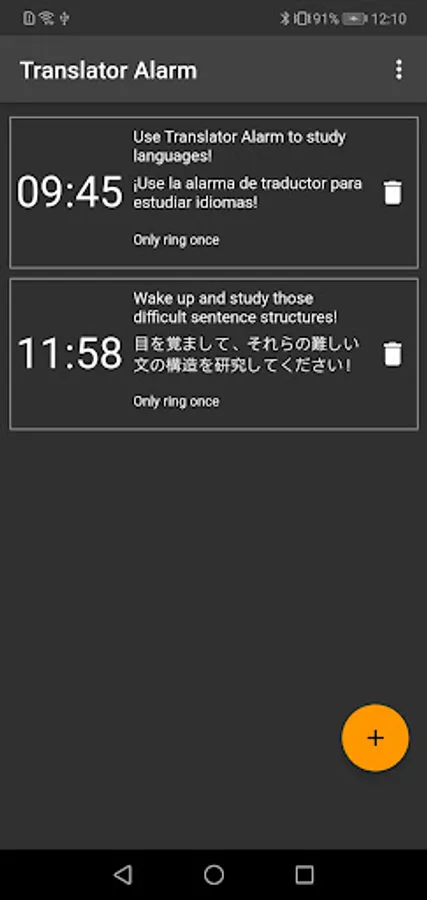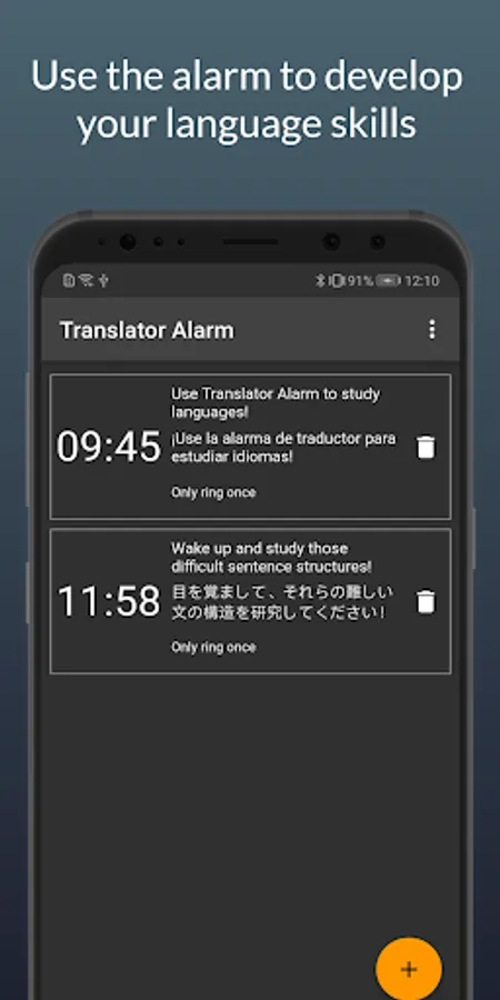 Translator Alarm allows you to set the ringtone for your alarm clock to other languages using Google Translate,