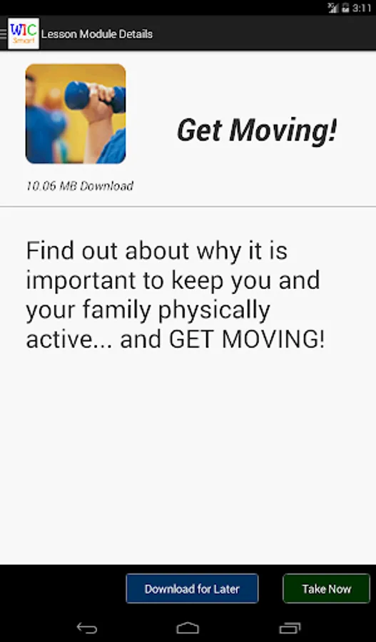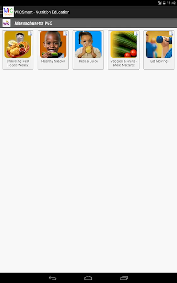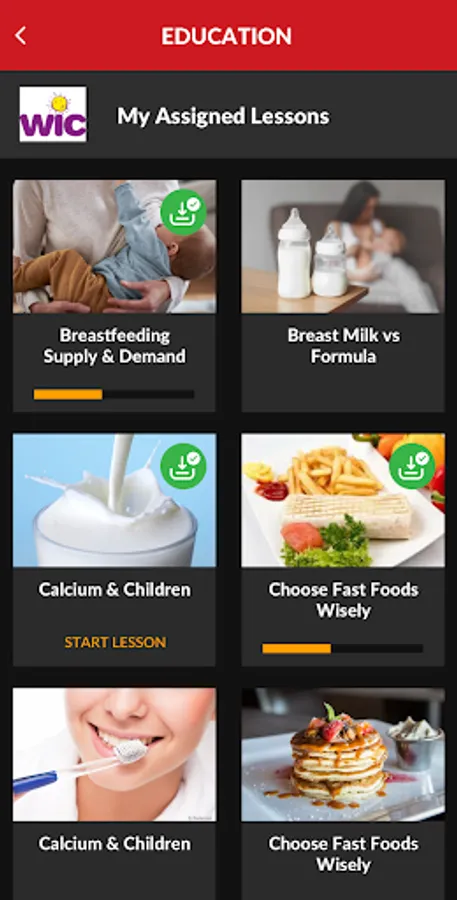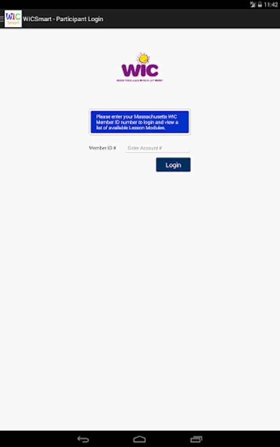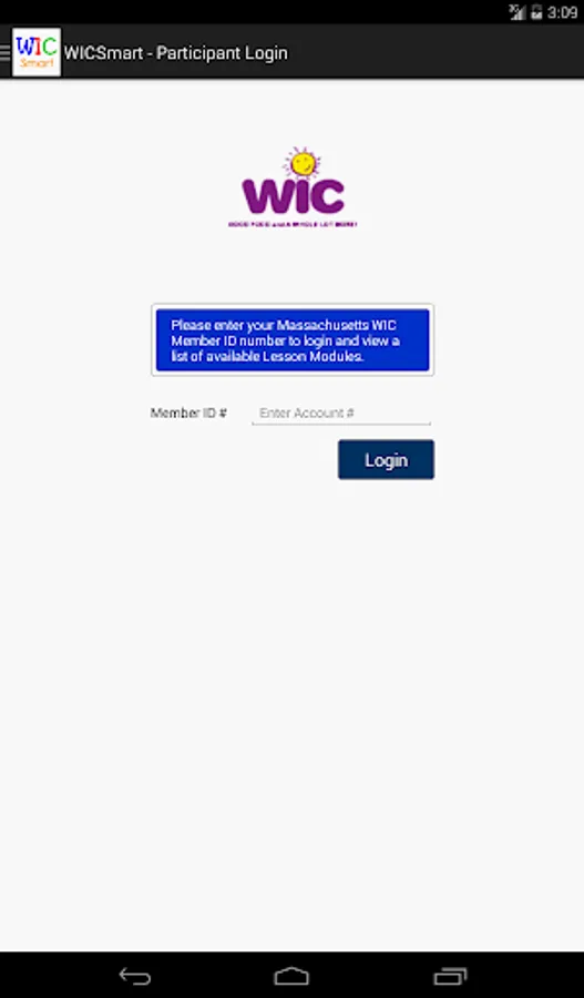 WICSmart ("WIC Smart") is a mobile application for participants of the Supplemental Nutrition Program for Women, Infants and Children (WIC). Using the WICSmart mobile app, participants can view health and nutrition lessons that have been assigned to them by their WIC nutritionists and complete those lessons from within the app. Participants may even save a partially completed lesson and resume it later when time permits! Lesson results will be automatically sent back to the WIC Agency to be to be reviewed.