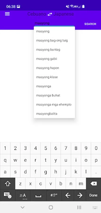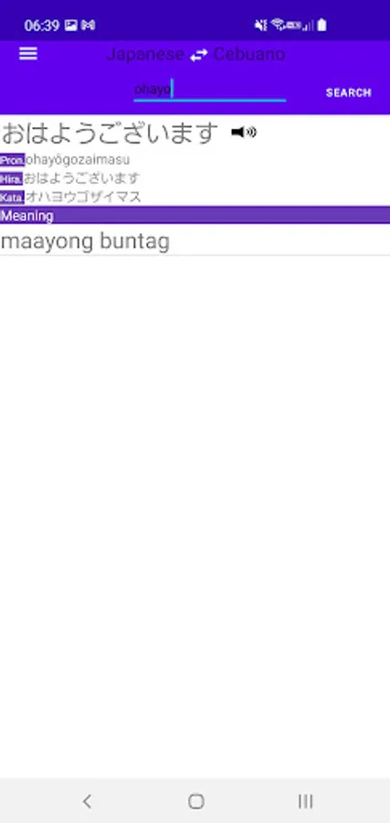 Enables to search Japanese(Nihongo, 日本語) words from Cebuano(Bisaya, Binisaya) with offline.