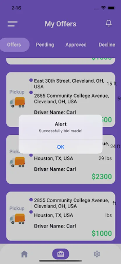 * Be able to bid on loads,