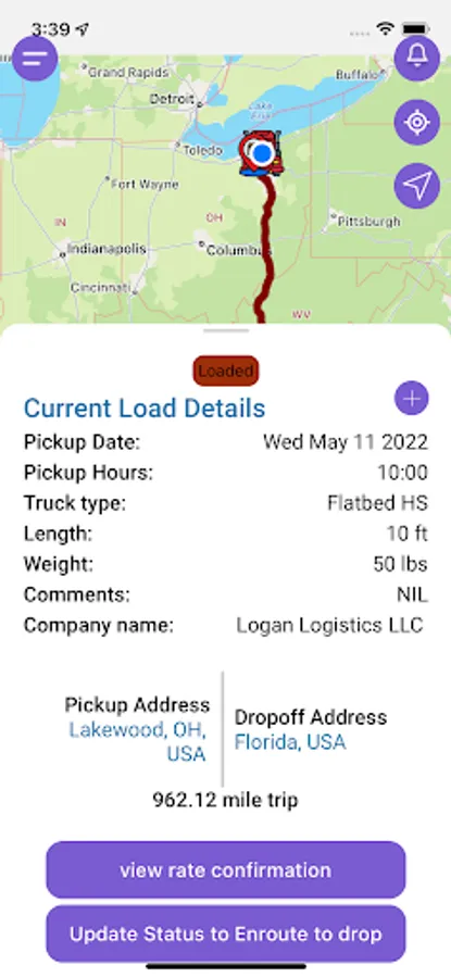 * Be able to view rate confirmation,