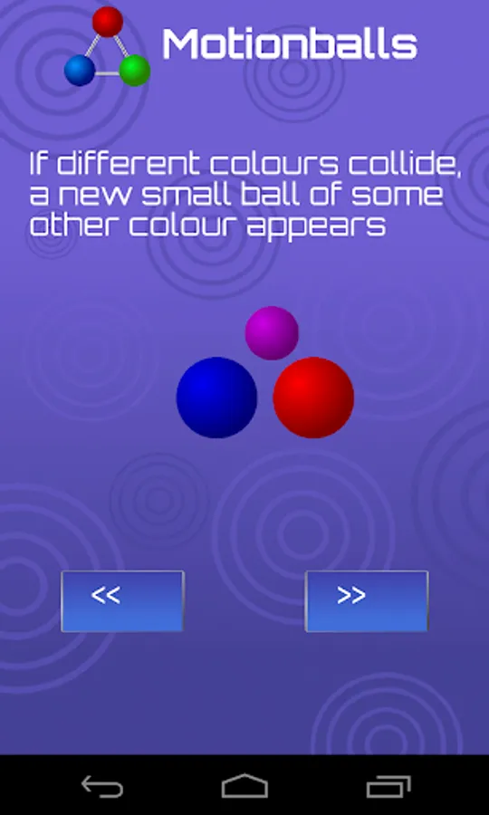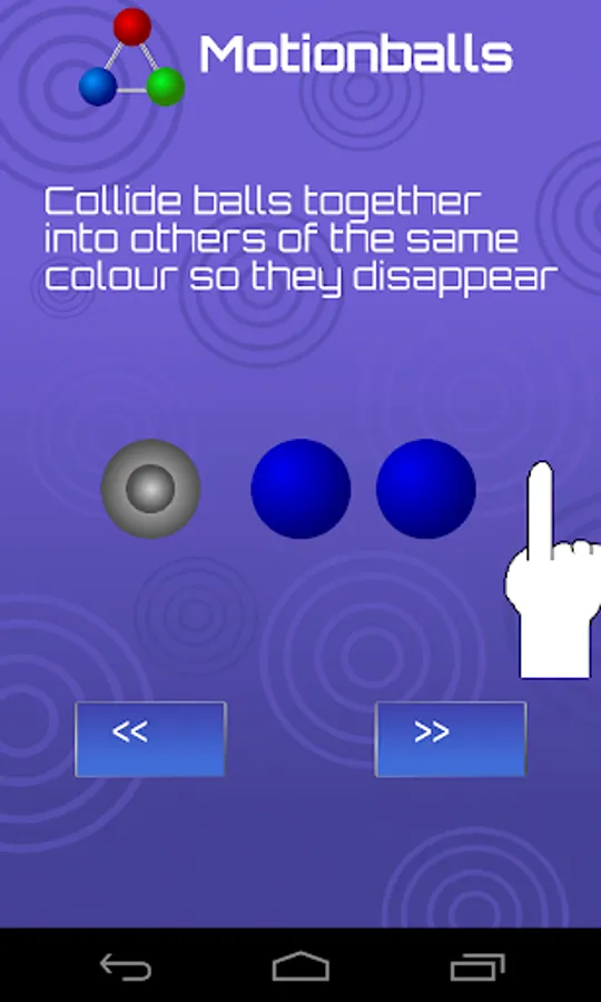 Clear the levels with using your ball that is in the middle of the screen. Push balls together into others of the same colour, and they will disappear. A bit like snooker/billiards, but without a cue.