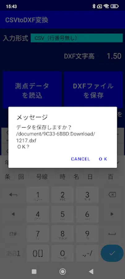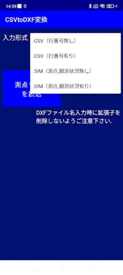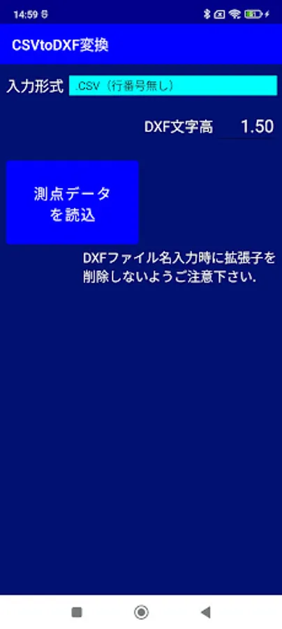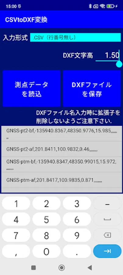Convert CSV format observation data (three-dimensional coordinates of survey points) saved by JPS's GNSS compatible survey calculation application "CivilSurveyor" to DXF format drawing data.