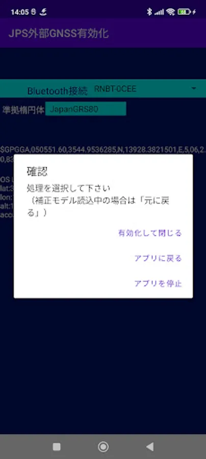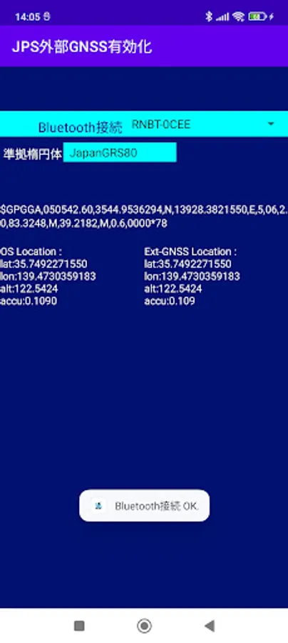 Bluetooth接続可能な外部GNSS受信機とアプリを接続し、外部GNSS受信機の位置をデバイス位置とし、他のアプリから利用できるようにするアプリです。