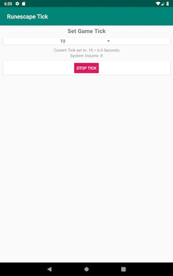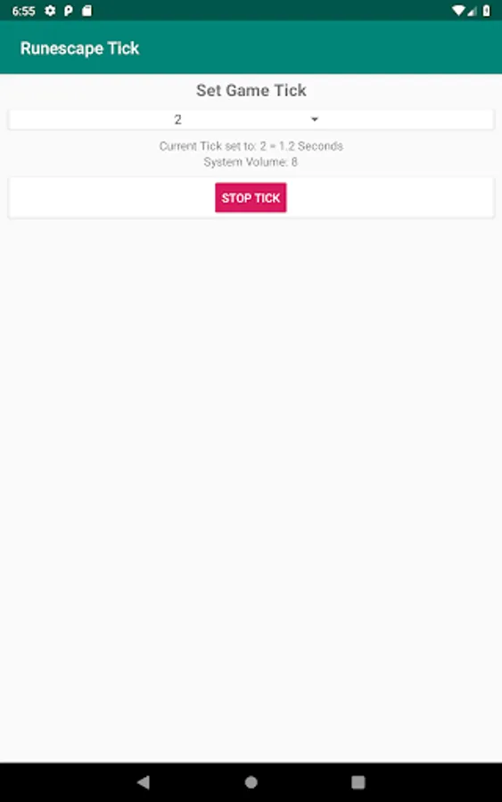 Avoid messing up your Runescape Tick clicks in-game with Runescape Tick Notifier, missing in-game ticks will be things of the past. The App allows you to pick from 1 to 15 ticks, you'll be able to change the tick are without even having to stop the notifier.