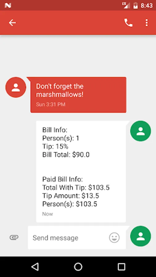 Easy share function built-in to share bill and gratuity paid with groups of people, via txt, email and others methods.