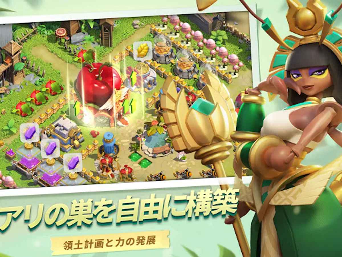 個性豊かな兵アリの組み合わせで、強敵を打ち倒す近道は無限に!蟻皇戦そして蟻王戦、またはバベルの塔などのイベントがあるのでストラテジーの醍醐味を満喫する上で、放置要素の追加でスキマ時間に気軽に遊ぶだけでも施設強化やキャラ育成をどんどん上がっていく!