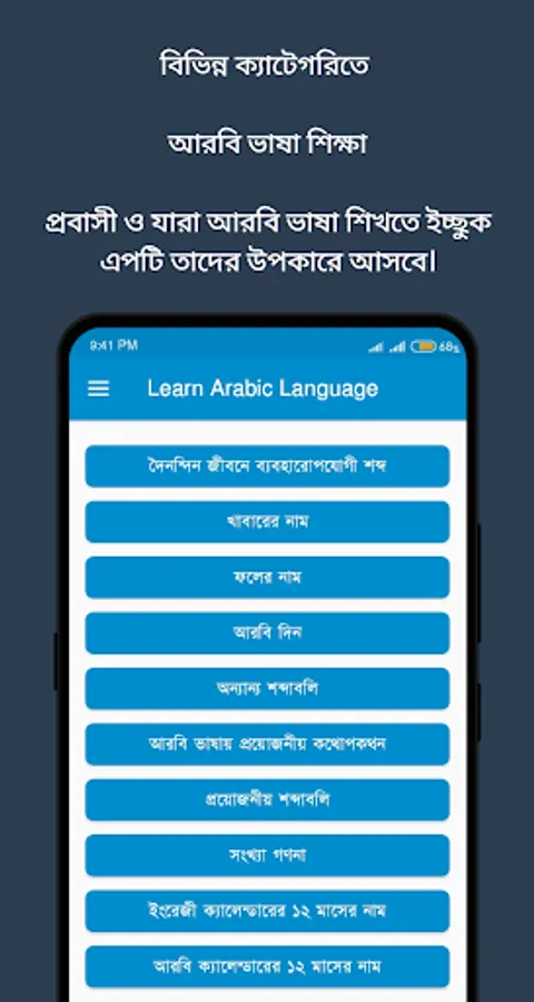 To learn Arabic easily, expatriates should memorize many Arabic words in Arabic language learning. So in this app the daily used words in Arabic are explained with Bengali meaning. The app can be the best way to learn Arabic language online.
