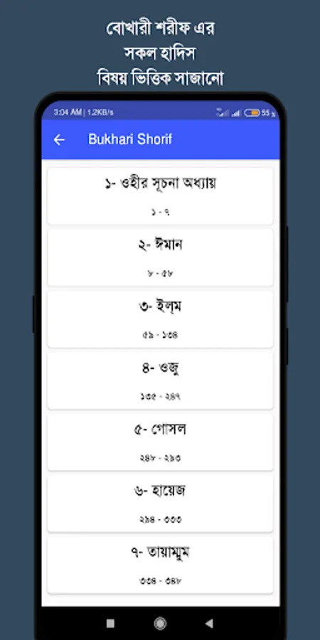 So through this app you can easily study all the hadiths or sayings of Bukhari Sharif.