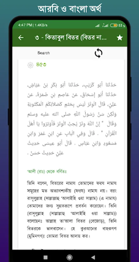 Tirmidhi Sharif is a huge collection of Hadith Sharif. All kinds of hadiths are available in this collection. Tirmidhi Sharif is fully cited in Arabic and Bengali. So it can be read very easily through this app. It is mentioned with analysis to facilitate understanding. It also contains all volumes of Tirmidhi Sharif Arabic Bengali. This app can be a good way to read all together.