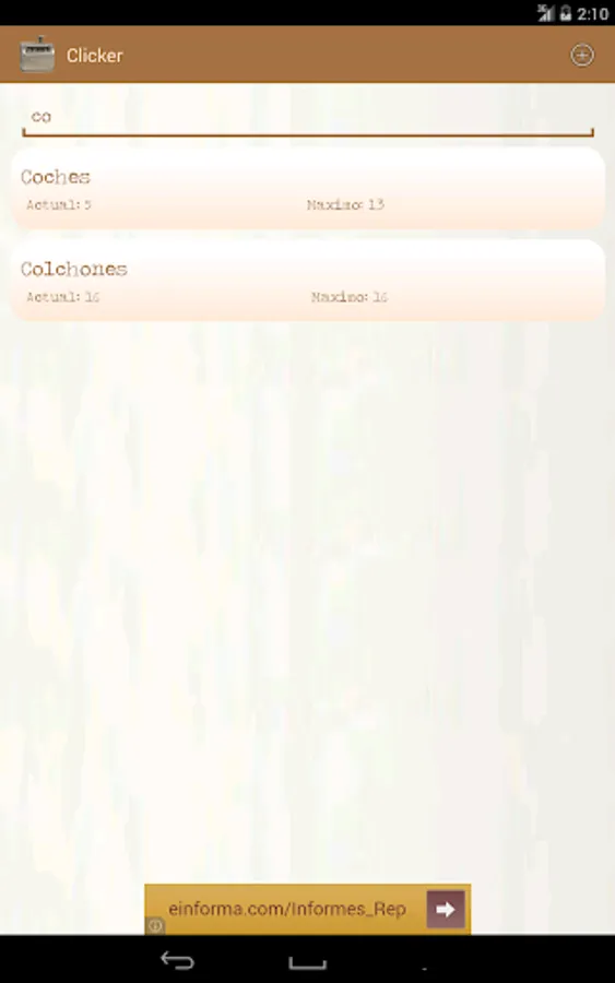 Clicker Counter is an application that lets you have everything you need and the time you need. This simple application which fulfills the function of counter and will help you not to lose track of what you need, allows you to share the results with friends on social networks and in the middle you want using a screenshot.