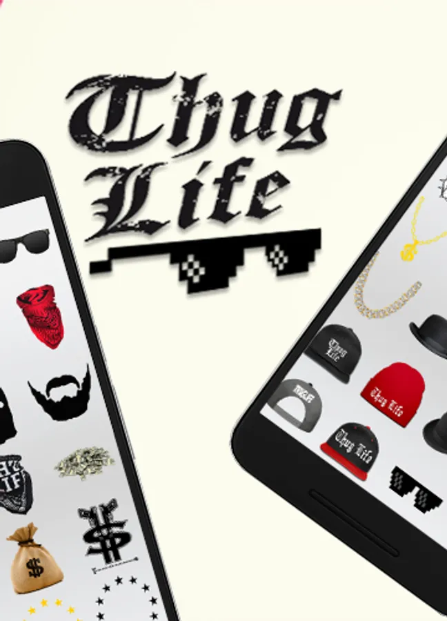 Ever wanted to create your own thug life photos like all those funny thug life videos with gangster black thug life glasses, shades, and hats? Thug Life Stickers will make this task easy for you. You can make a thug life image, collage or montage for yourself or for your friends in few seconds! Wear the Tupac swagger and look like your favorite thug rapper with Thug Life Stickers