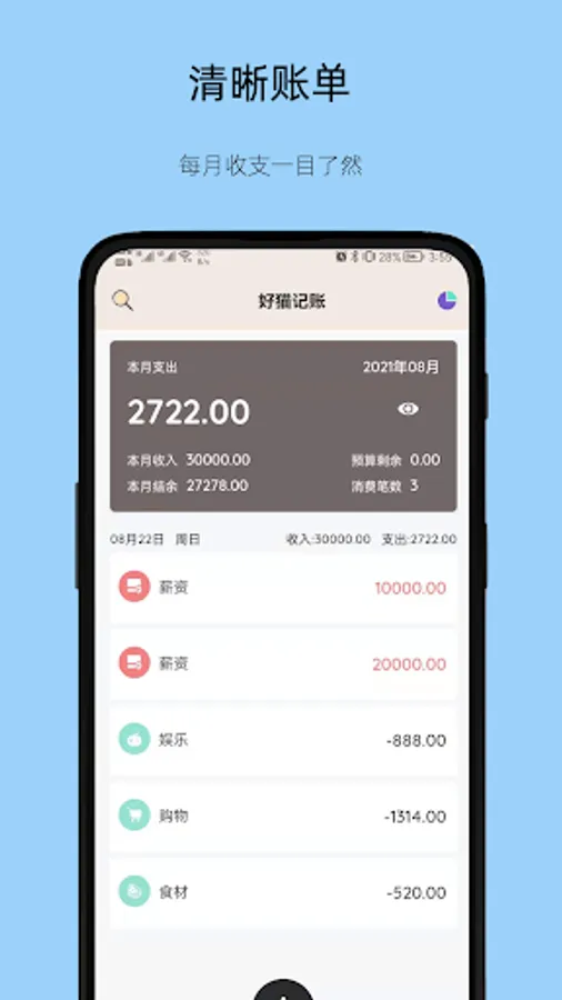 Haomao bookkeeping is small and beautiful, saves power and space, does not enforce permissions, and more advanced functions will be launched soon.