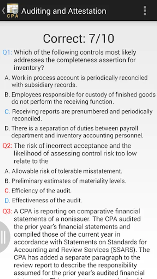 CPA Questions: Auditing and Attestation, Financial Accounting and Reporting, Regulation, Business Environment And Concepts