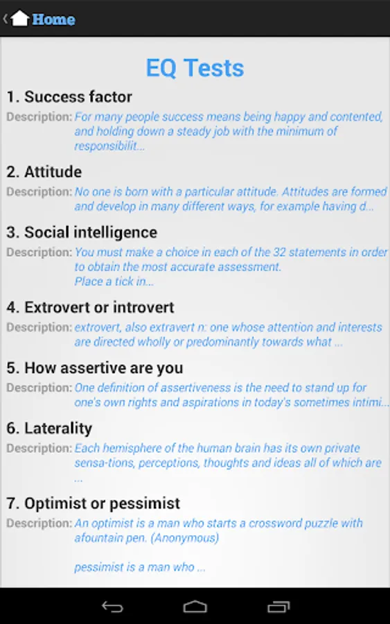 You will find this EQ App is the easiest and simplest way to discover yourself with a mix of self-report and situation questions related to various aspects of emotional intelligence (EQ).