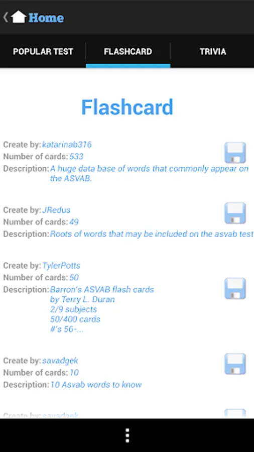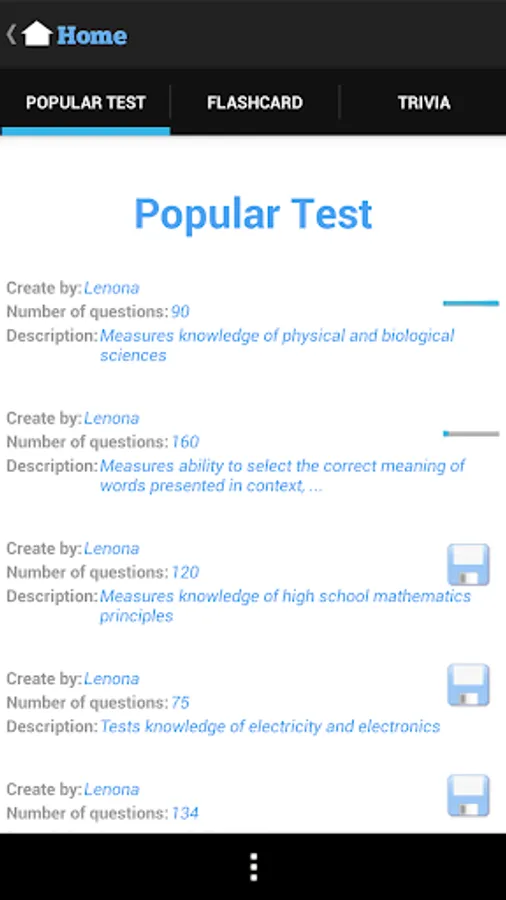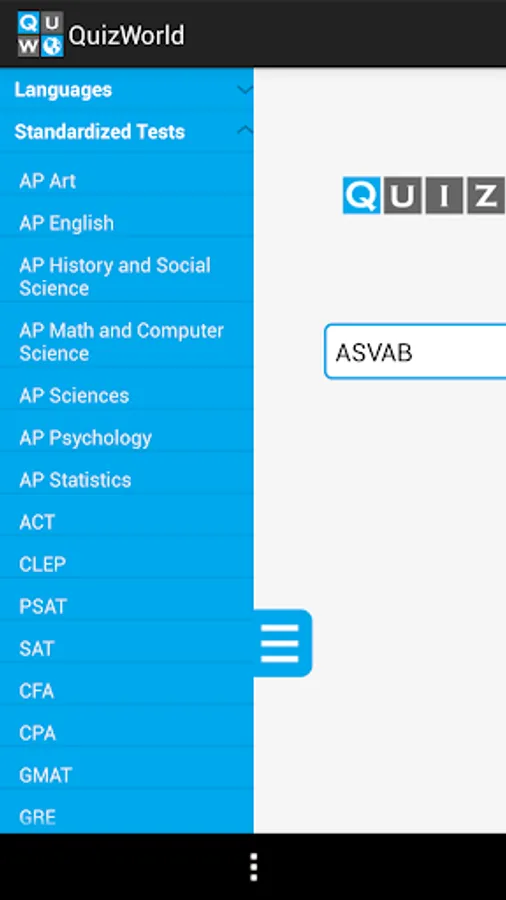 Inside Quizworld app, you can download many Standardized Tests like: ASVAB, NECLEX, IELTS, TOEFL, TOEIC, GRE, GMAT, GED etc.