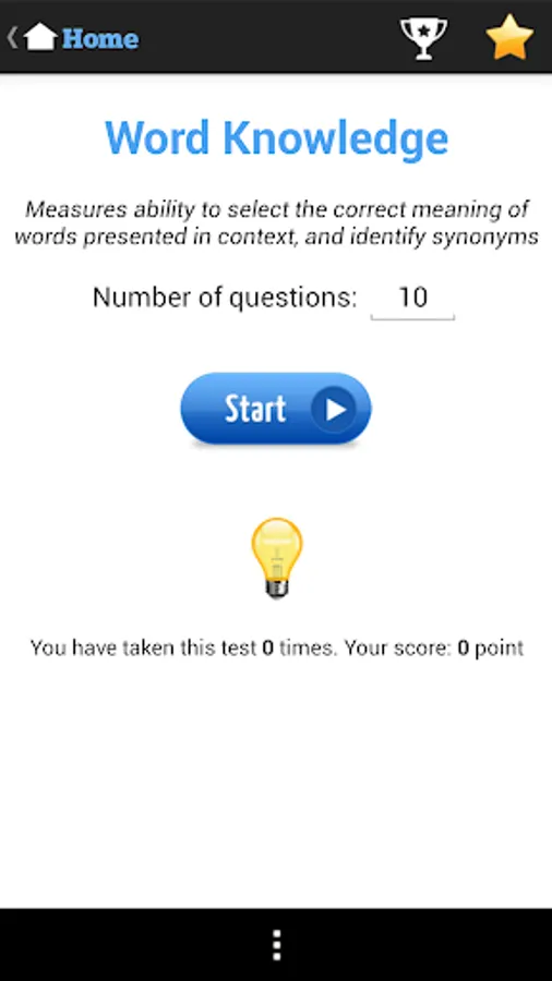 Beside of standardized test, you also can find many trivia question; All of question are connect to funtrivia website that is the world's largest and most popular trivia website with over one million trivia questions and quizzes.
