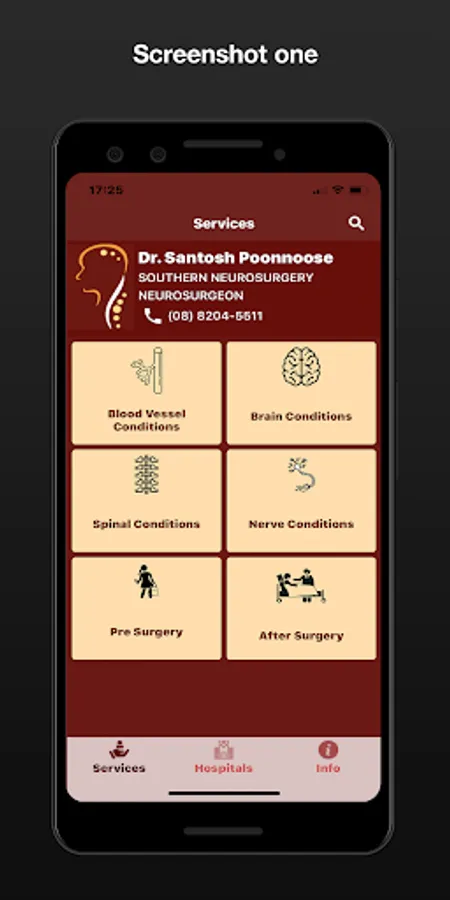 Neurosurgery SP is a mobile application for patients who are scheduled to undergo neurosurgical procedures and for patient’s family members. It is designed to inform, in brief about the various standard neurosurgical procedures, including the risks associated with these procedures. The app also includes simple diagrams that describe the steps involved in some of these procedures.