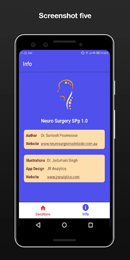 The content and descriptions of NeuroSurgery SP app are solely owned by Dr Santosh Poonnoose and has been replicated from the website with his permission. The illustrations accompanied in the app have been designed and drawn by Dr Jadumani Singh, Director of JRAnalytics. NeuroSurgery SP app is designed, edited and developed by JR Analytics team, and is the sole property of JR Analytics. For more information about Dr Santosh Poonnoose go to http://www.neurosurgeonadelaide.com.au/dr-santosh-isaac-poonnoose.html