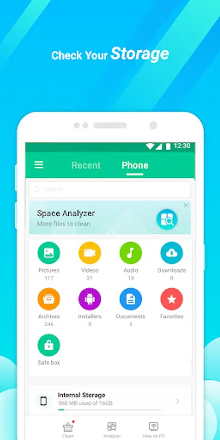 Explore your files easily by clear categorization, including Recents, Installers, Downloads, Documents, Audio, Pictures, Videos, Archives, Favorites, and Safebox. All files are sort by their file types and characteristics. View file in each categorization exactly and enjoy files browsing.
