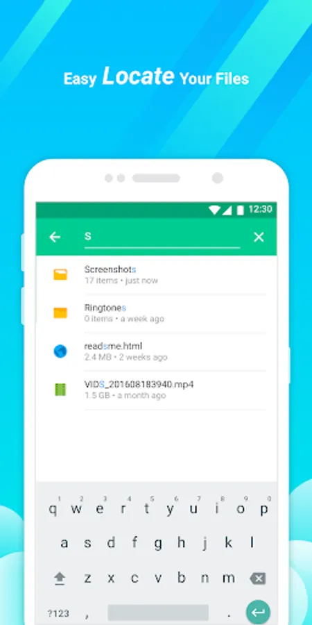 Looking for files, but do not know the exact location? Weather in storage or SD card, just needs one second. Use the search box at the top of the homepage, search the file you need and the result will appear immediately. Have no need to find specific files from every category.