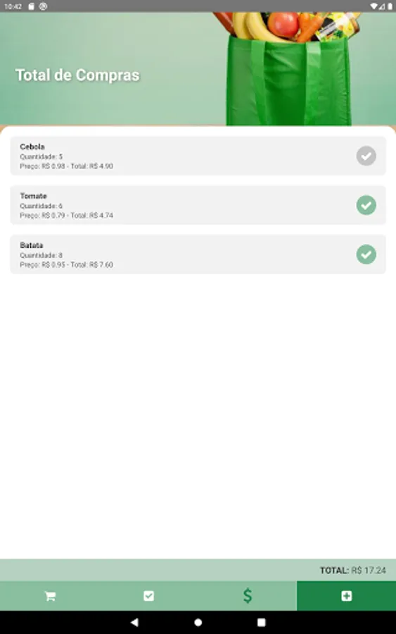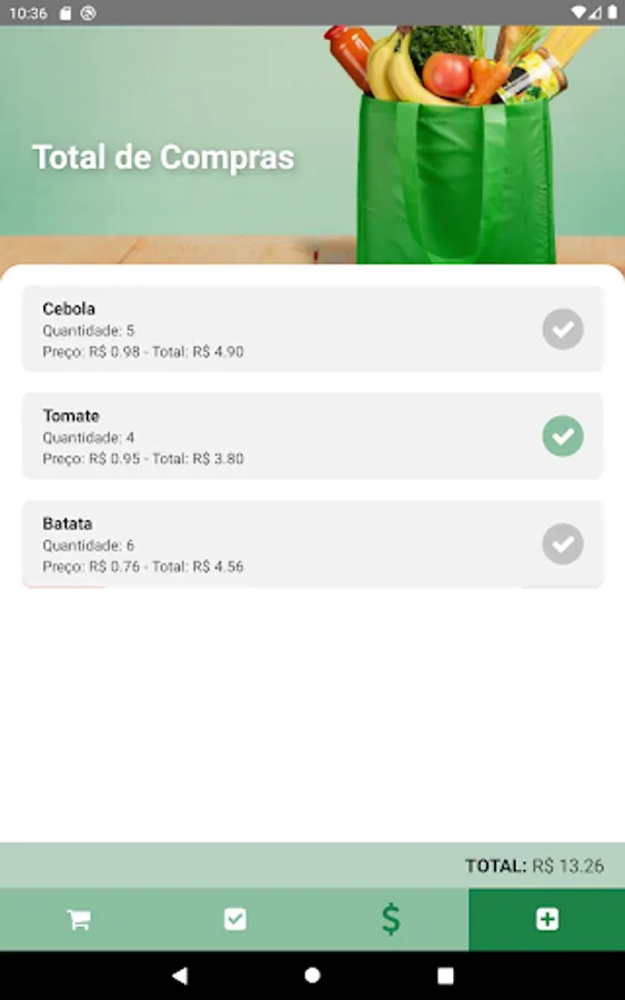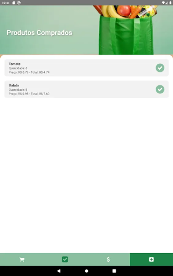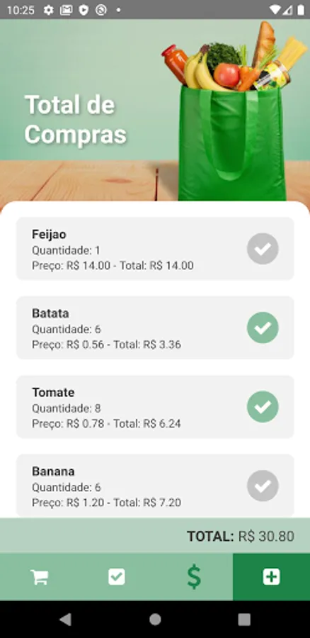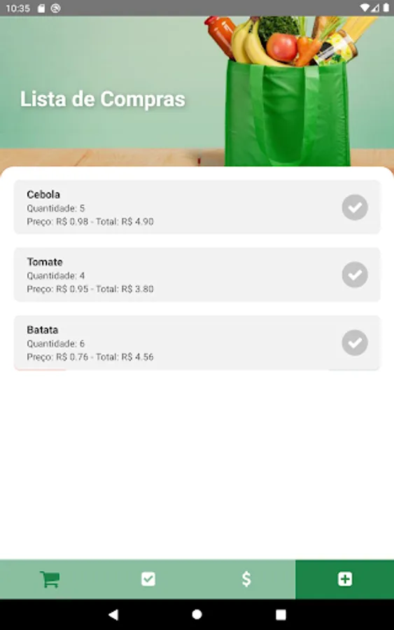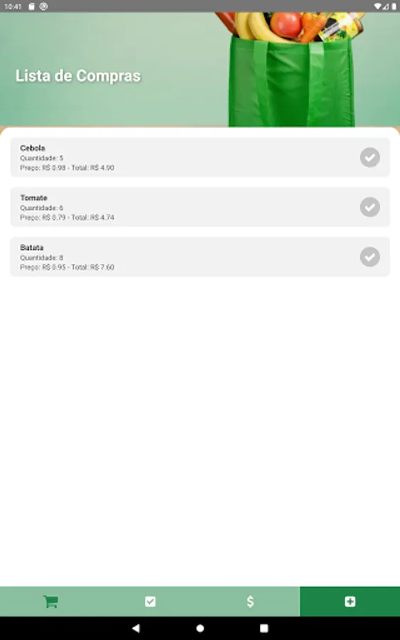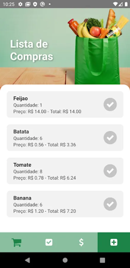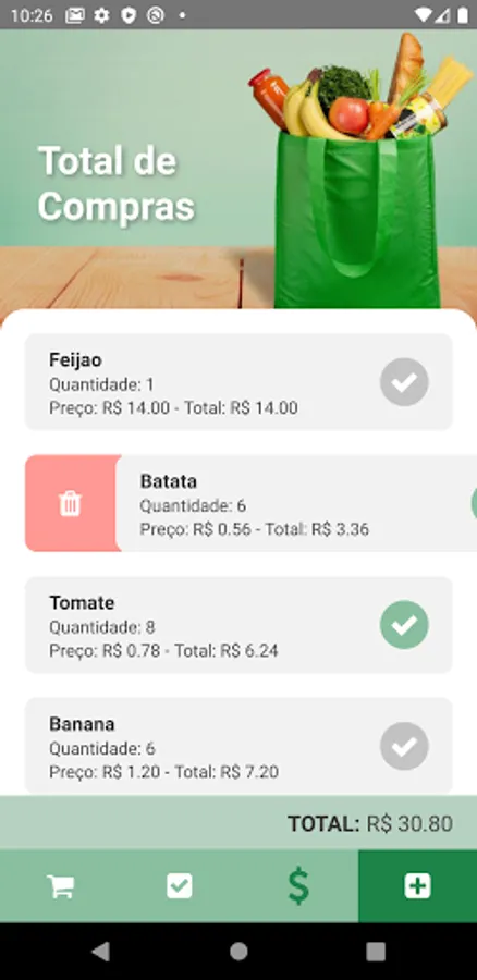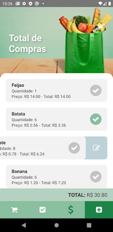 Shopping list is a simple app to help you manage the items you need to buy in the market. In addition to inserting, editing and deleting the items you want, you can also see the sum of the value of all the products, helping to keep your expenses on track.