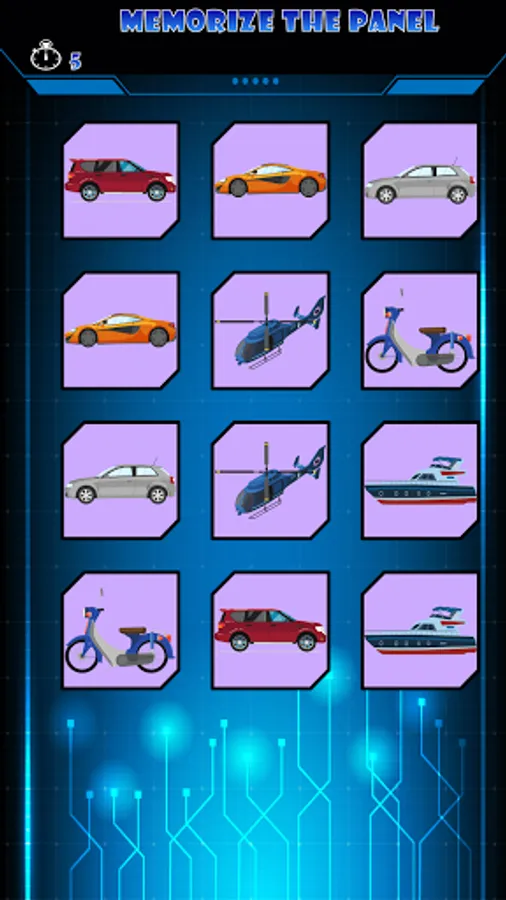 ⭐ Memory pairs matching games for adults : Memorize and find pairs shown in the panel before the end of the time limit, it contains various image templates such as colors, numbers, letters, animals, fruits, vehicles and insects. How many panels are you able to complete?