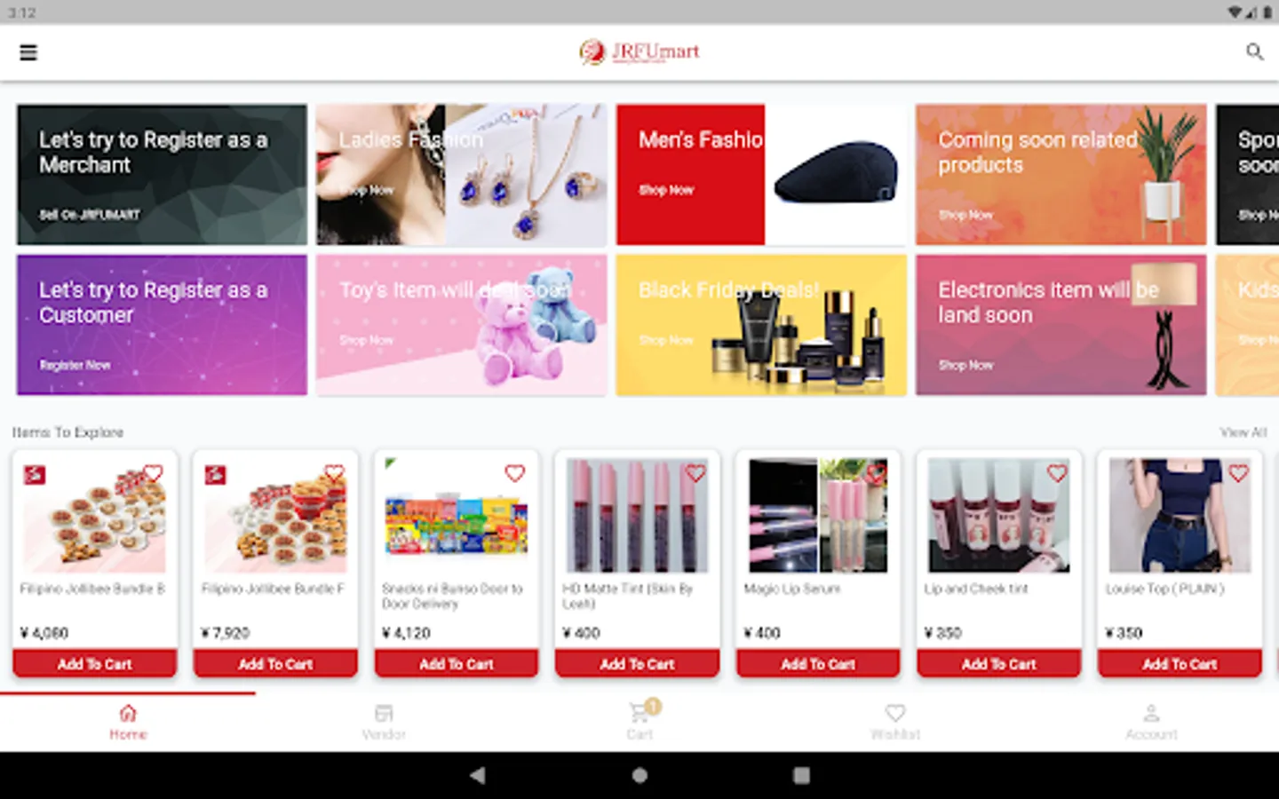 JRFUMART is a Mall, a Marketplace, and a Community in your pocket that provides immediate and easy access to over thousands of products in hundred of categories.