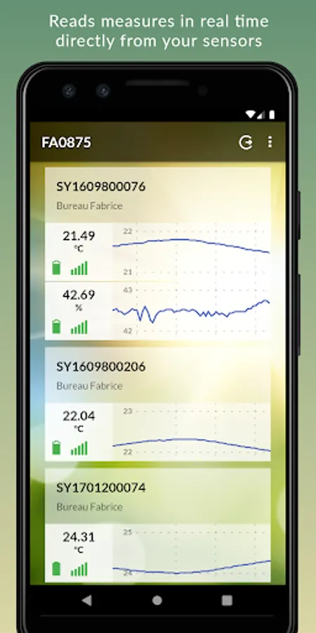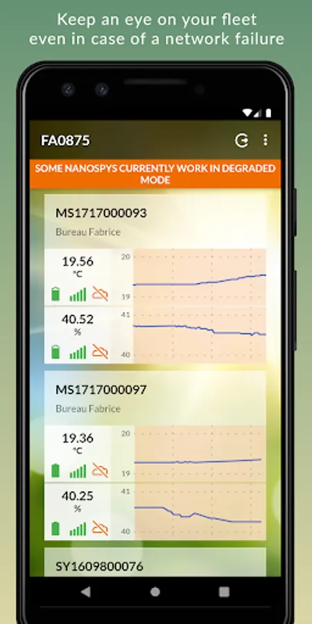 The MyNanoView app displays in real time the measurements and alarms of Nano SPYs devices simply by bringing your Tablet or Mobile close to a Bluetooth Nano LINK.