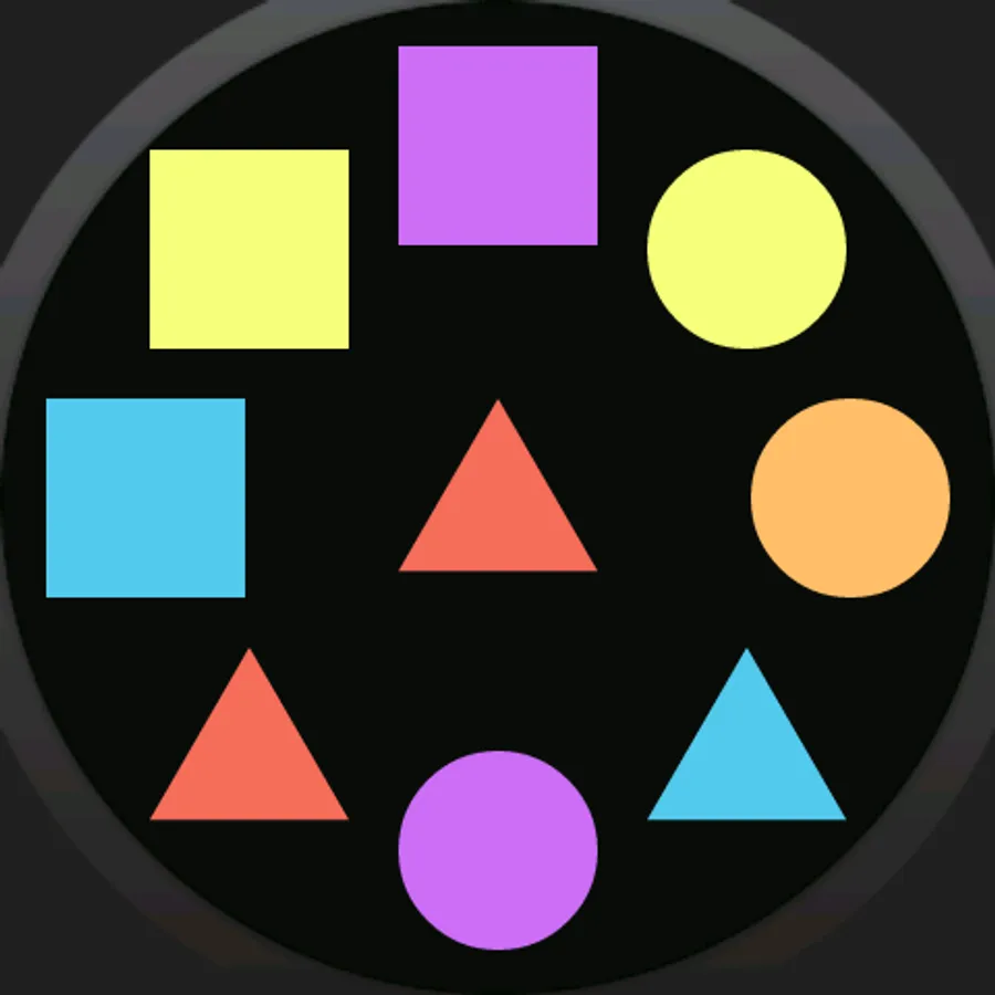 Match the shape and color of a random figure with the shapes available around. Be as fast as possible and beat your high score! Optimized for round and square screens.