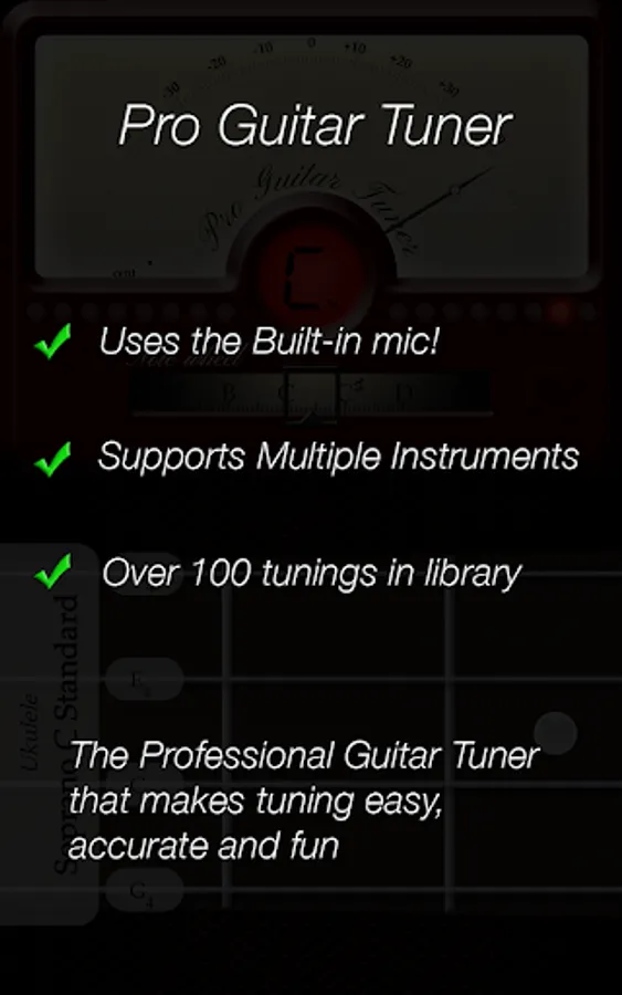 Because Pro Guitar Tuner is chromatic you can tune most types of stringed instruments.