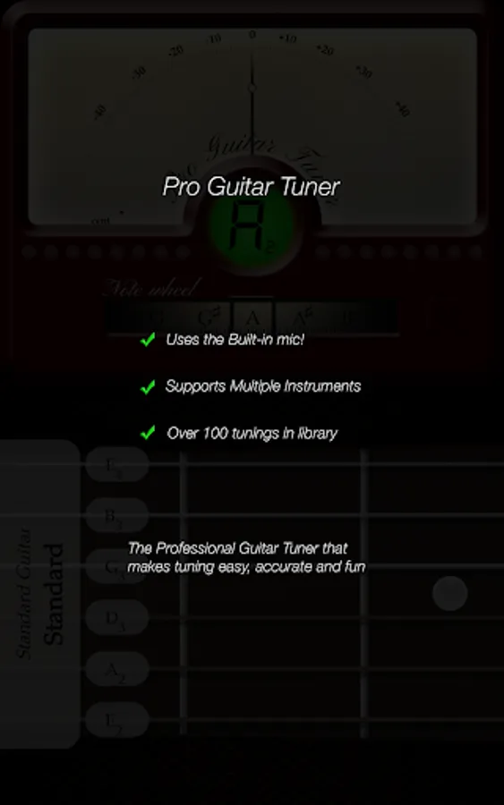 We have been working hard to bring you the best Guitar Tuner App on Android. The interface is similar to the tuner on proguitar.com but optimized for Android.