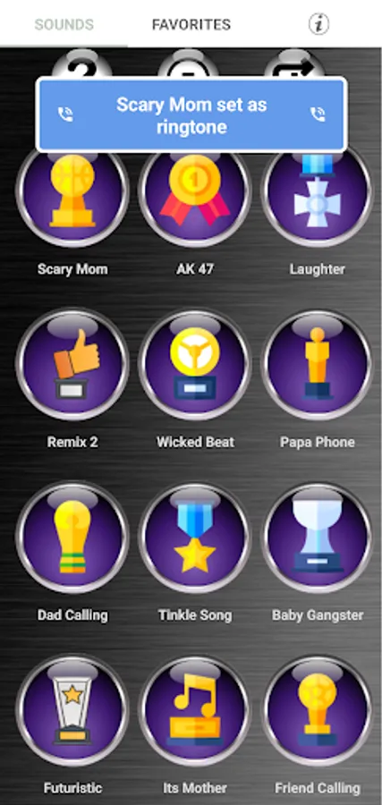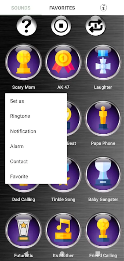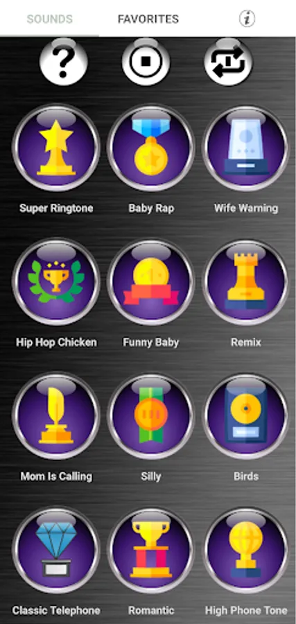 π Soundboard Functionality: Easily navigate through the app and preview each ringtone or sound by tapping on the clock icon buttons. For added convenience, use the loop button to make the sound or song repeat.