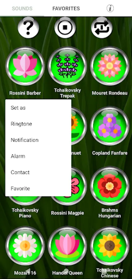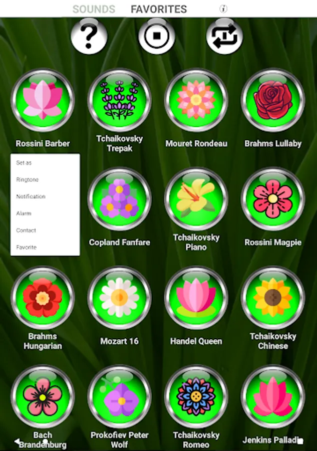 🎵 Immerse yourself in the world of classical music with our intuitive soundboard interface. Simply tap on each button to listen to and preview the stunningly clear ringtone. Want to enjoy the melody on loop? We've got you covered with the loop button. And if you find a favorite, press and hold the button to set it as a ringtone, alarm, notification, or assign it to a specific contact. It's that simple.