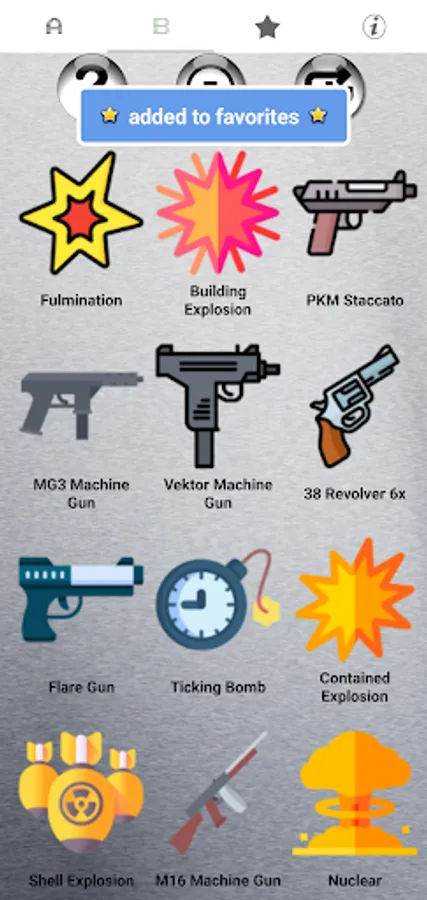 4. Favorites Page: Seamlessly store and access your favorite sound effects on a dedicated page, equipped with the same functionality as the main pages. Effortlessly revisit your preferred choices whenever you desire.