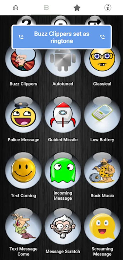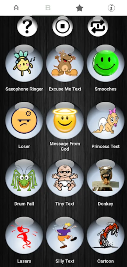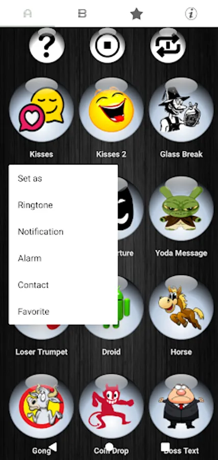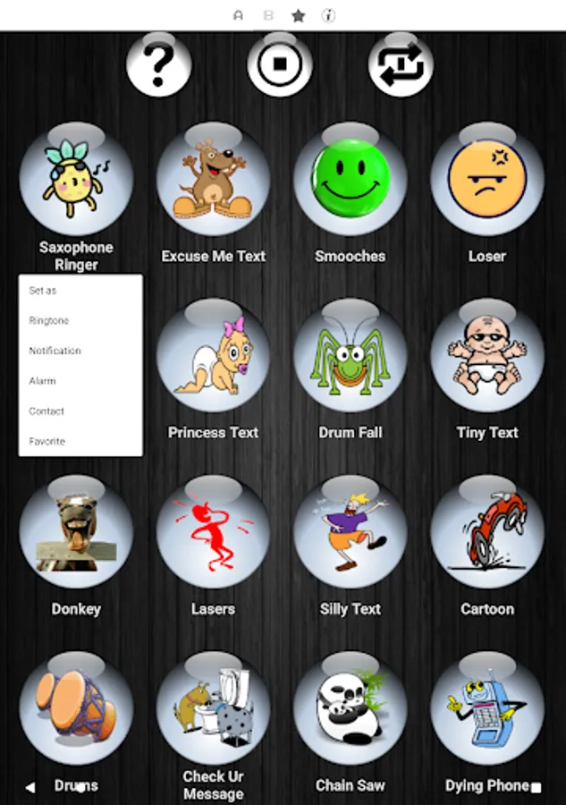 😂 Simply press each button to listen and preview the loud and clear funny sound. If you like it, press and hold the button. Then select either ringtone, alarm, notification, or contact.